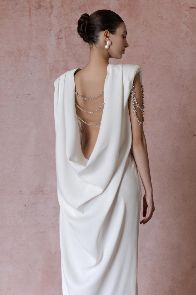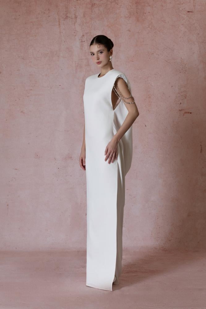 تألقي بمظهر استثنائي وفاخر مع هذا الفستان الذي يمتلك تصميماً ساحراً، صنع هذا الفستان باتقان ليناسب مظهرك العام، هذا الفستان الأنيق يتوفر باللون الأبيض، يعد خياراً مناسباً دائماً لأي مناسبة.