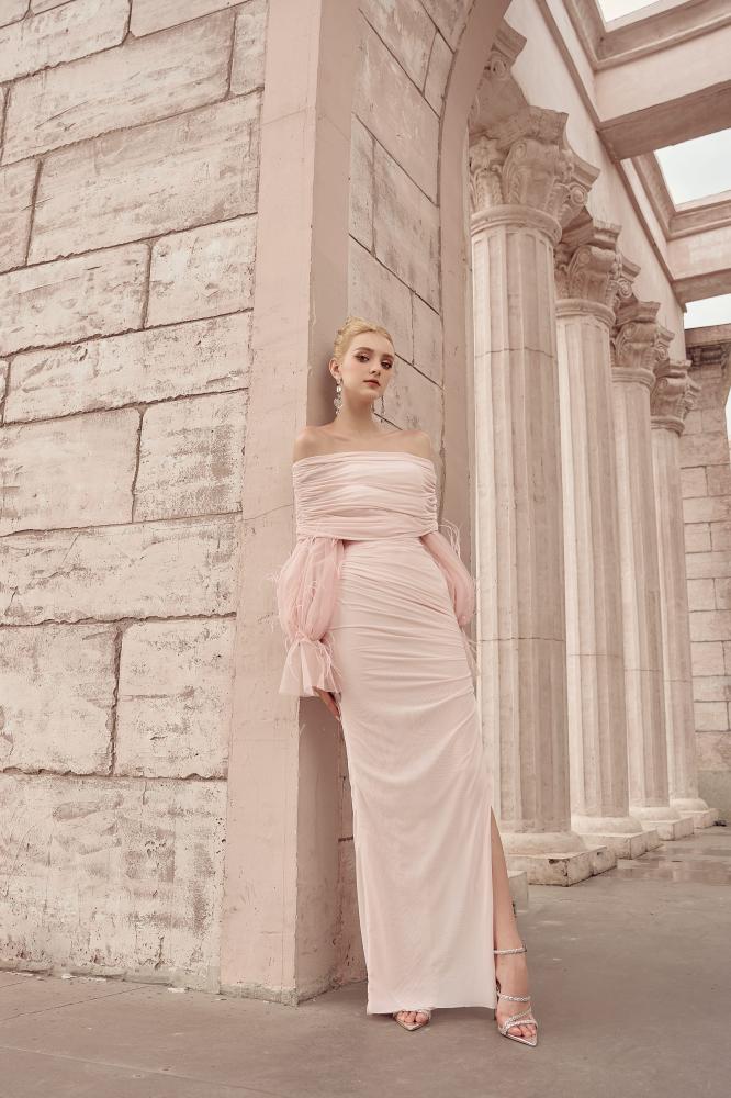 تألقي بمظهر استثنائي وفاخر مع هذا الفستان الذي يمتلك تصميماً ساحراً، صنع هذا الفستان باتقان ليناسب مظهرك العام، هذا الفستان الأنيق يتوفر باللون الوردي الفاتح، يعد خياراً مناسباً دائماً لأي مناسبة.