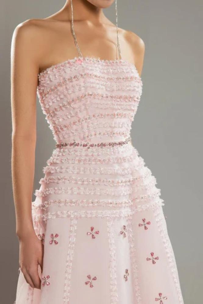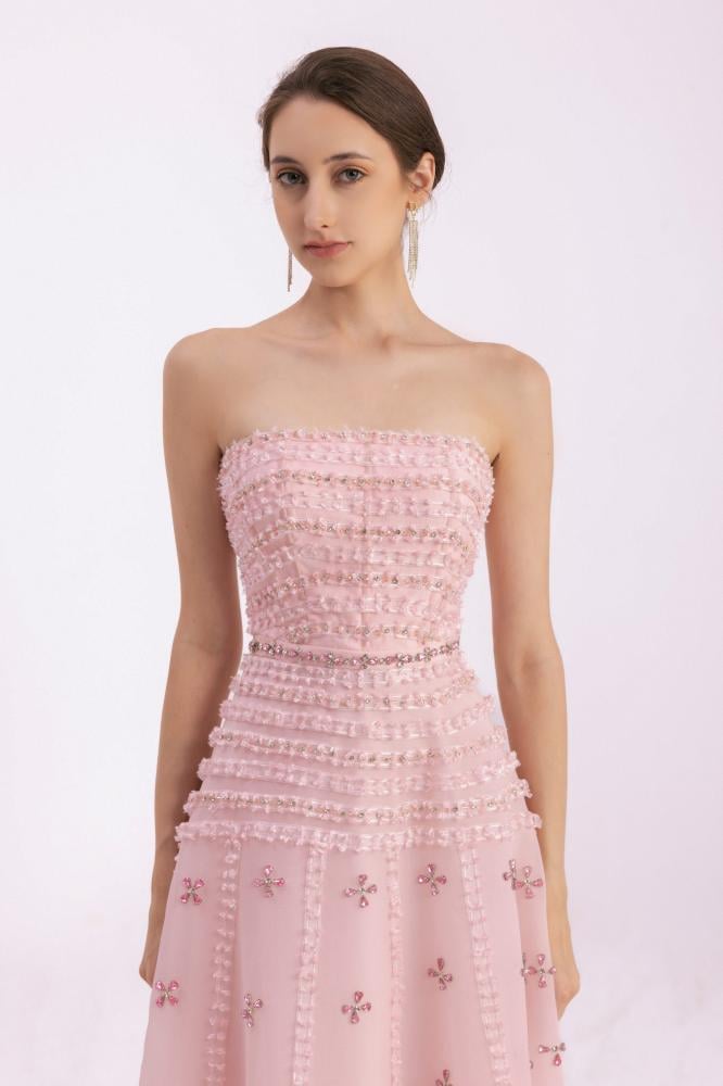 تألقي بمظهر استثنائي وفاخر مع هذا الفستان الذي يمتلك تصميماً ساحراً، صنع هذا الفستان باتقان ليناسب مظهرك العام، هذا الفستان الأنيق يتوفر باللون الوردي، يعد خياراً مناسباً دائماً لأي مناسبة.