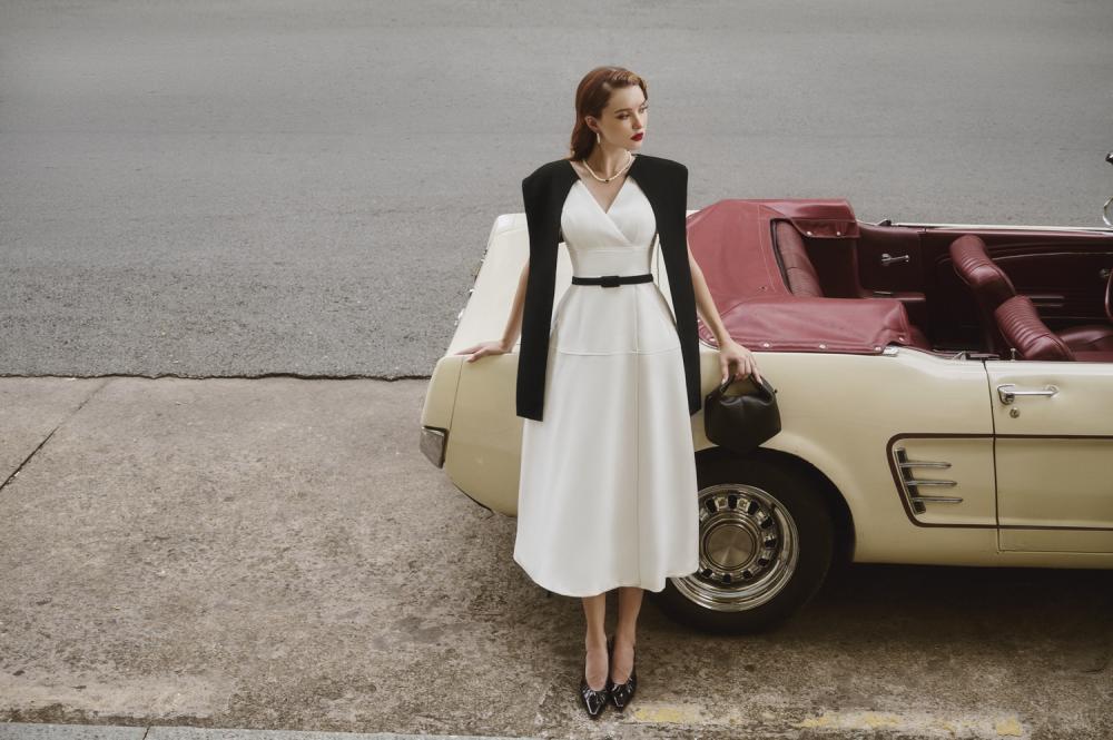 تألقي بمظهر استثنائي وفاخر مع هذا الفستان الذي يمتلك تصميماً ساحراً، صنع هذا الفستان باتقان ليناسب مظهرك العام، هذا الفستان الأنيق يتوفر باللونين الأبيض والأسود معاً، يعد خياراً مناسباً دائماً لأي مناسبة.