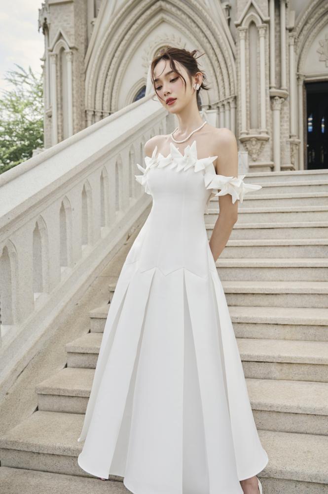 تألقي بمظهر استثنائي وفاخر مع هذا الفستان الذي يمتلك تصميماً ساحراً، صنع هذا الفستان باتقان ليناسب مظهرك العام، هذا الفستان الأنيق يتوفر باللون الأبيض، يعد خياراً مناسباً دائماً لأي مناسبة.