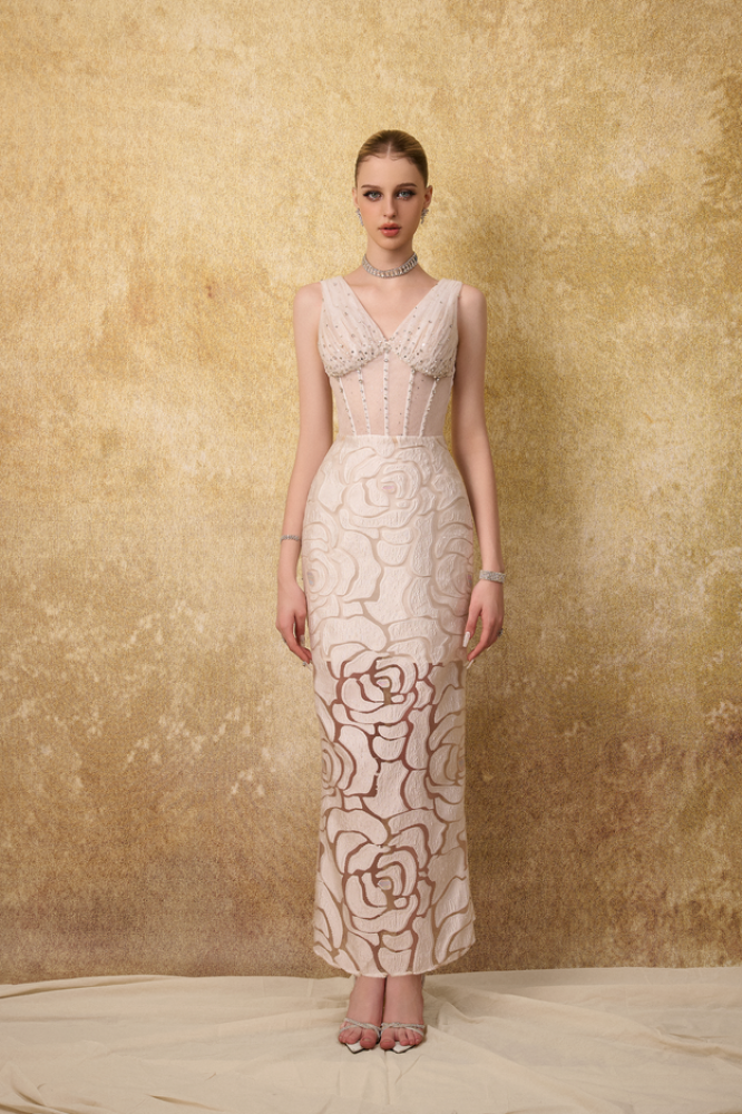 تألقي بمظهر استثنائي وفاخر مع هذا الفستان الذي يمتلك تصميماً ساحراً، صنع هذا الفستان باتقان ليناسب مظهرك العام، هذا الفستان الأنيق يتوفر باللون الأبيض، يعد خياراً مناسباً دائماً لأي مناسبة.