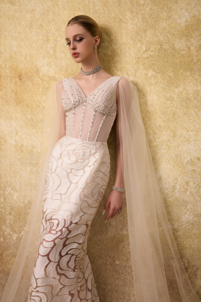 - مصنوع من مادة التويل والحرير والبريق اللامع الفاخر .