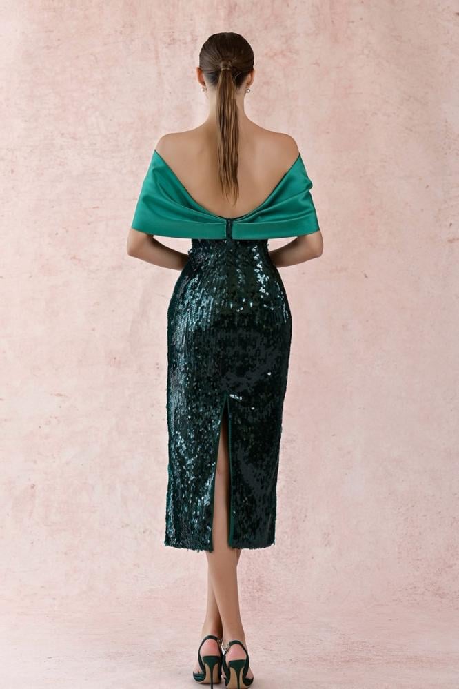 تألقي بمظهر استثنائي وفاخر مع هذا الفستان الذي يمتلك تصميماً ساحراً، صنع هذا الفستان باتقان ليناسب مظهرك العام، هذا الفستان الأنيق يتوفر باللون الأخضر الغامق، يعد خياراً مناسباً دائماً لأي مناسبة.