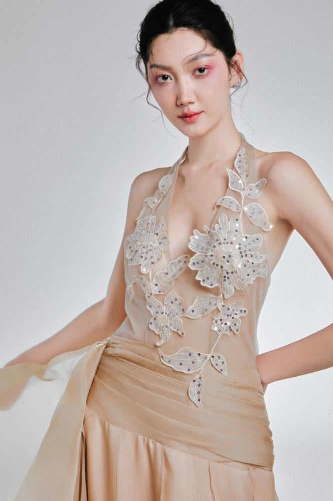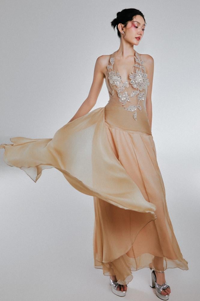 تألقي بمظهر استثنائي وفاخر مع هذا الفستان الذي يمتلك تصميماً ساحراً، صنع هذا الفستان باتقان ليناسب مظهرك العام، هذا الفستان الأنيق يتوفر باللون البيج، يعد خياراً مناسباً دائماً لأي مناسبة.