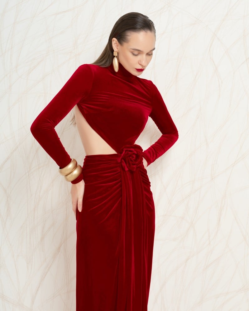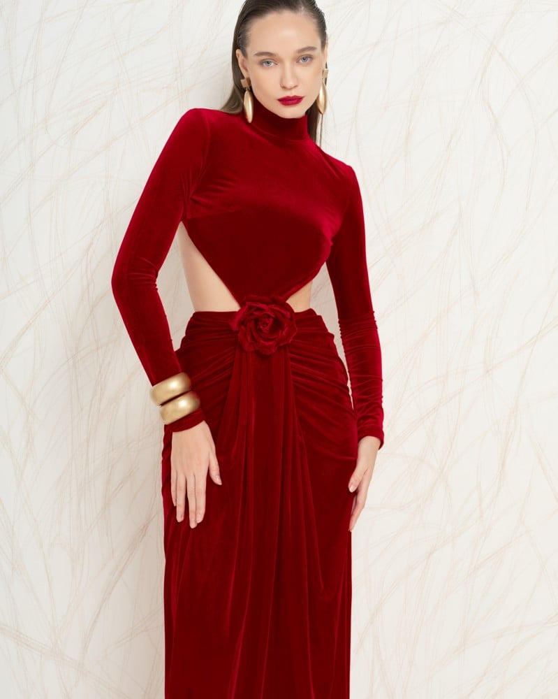 تألقي بمظهر استثنائي وفاخر مع هذا الفستان الذي يمتلك تصميماً ساحراً، صنع هذا الفستان باتقان ليناسب مظهرك العام، هذا الفستان الأنيق يتوفر باللون الأحمر، يعد خياراً مناسباً دائماً لأي مناسبة.