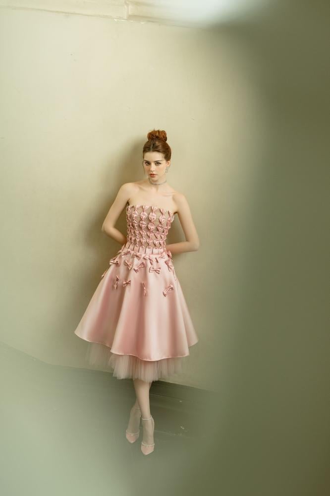 تألقي بمظهر استثنائي وفاخر مع هذا الفستان الذي يمتلك تصميماً ساحراً، صنع هذا الفستان باتقان ليناسب مظهرك العام، هذا الفستان الأنيق يتوفر باللون الوردي، يعد خياراً مناسباً دائماً لأي مناسبة.