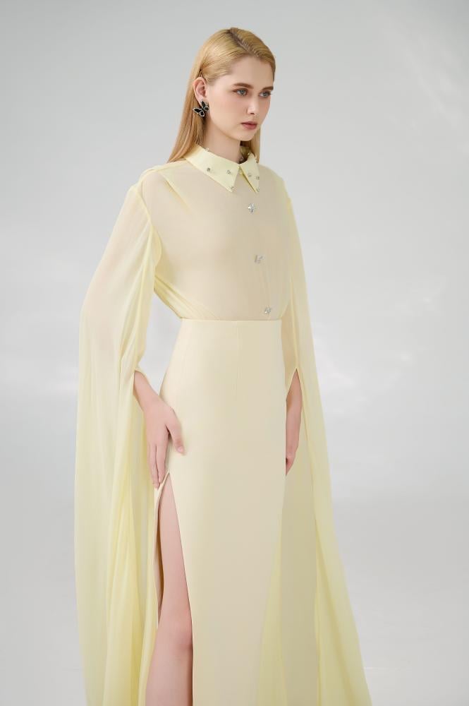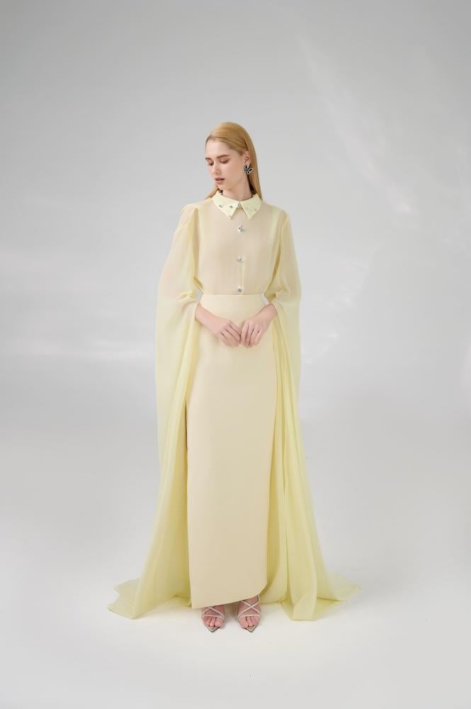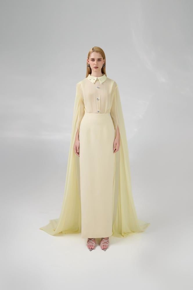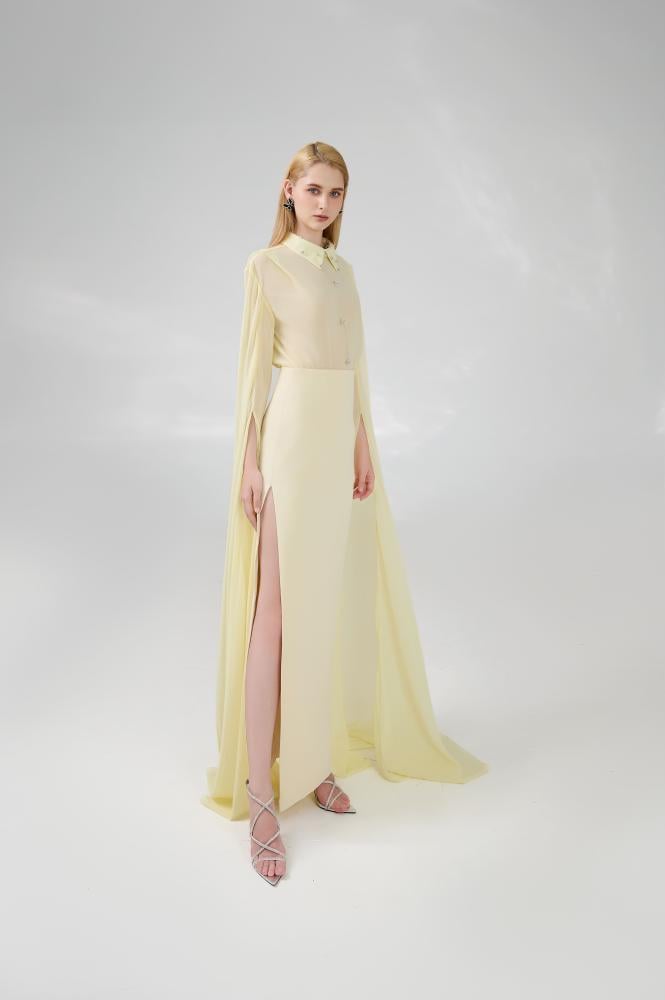 - تنورة بفتحة جانبية طويلة.