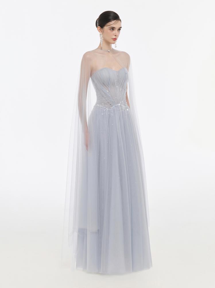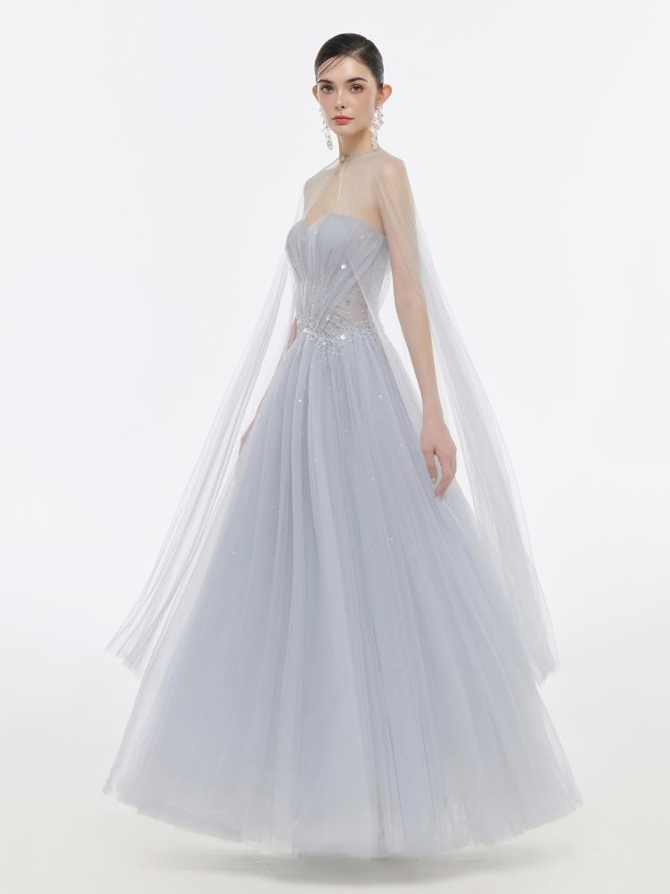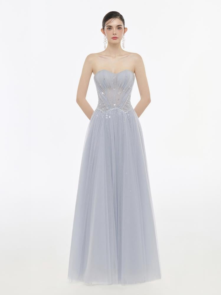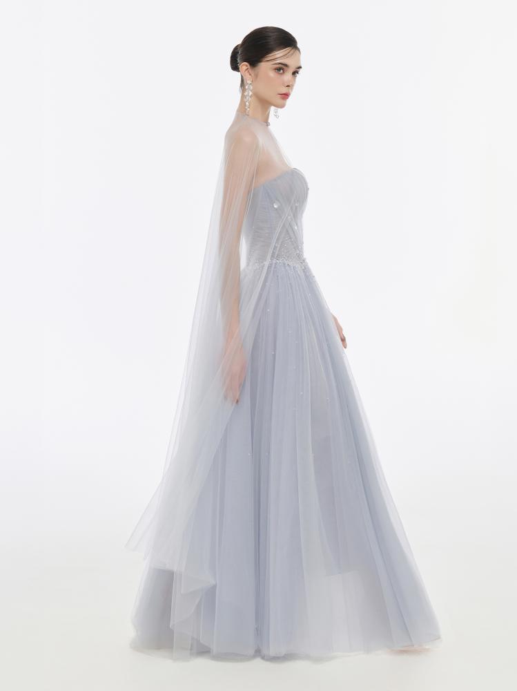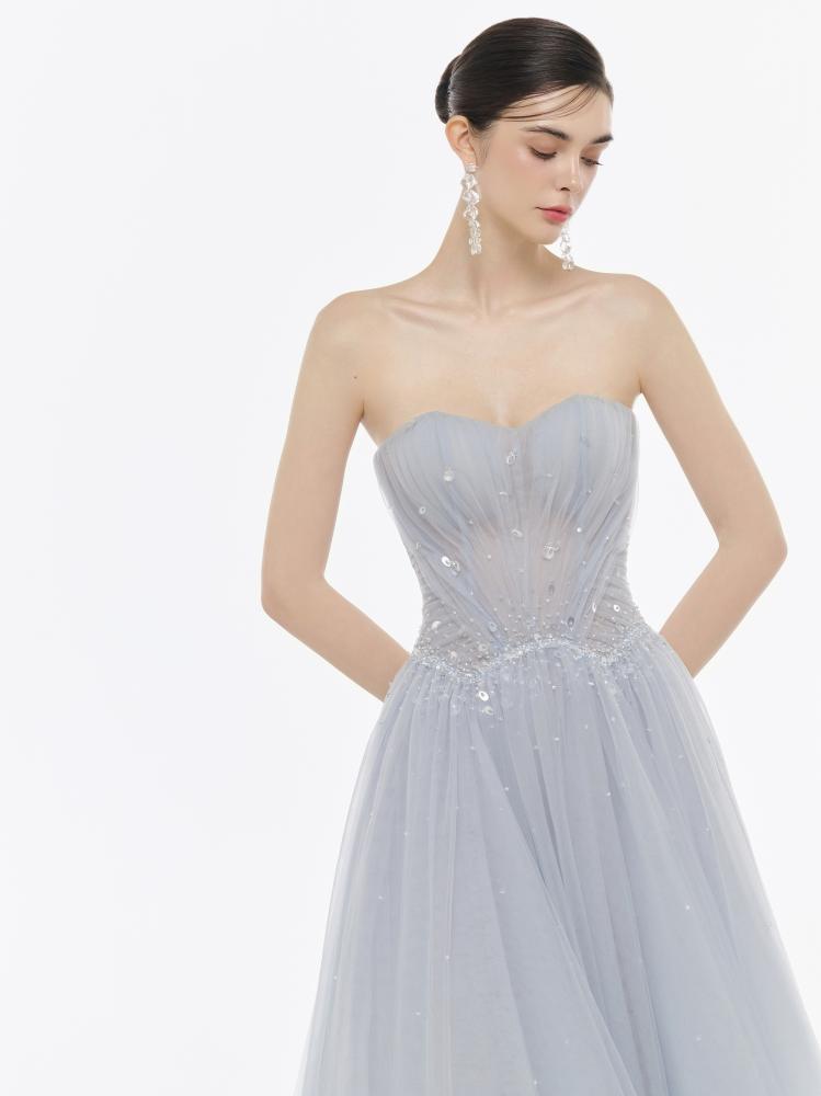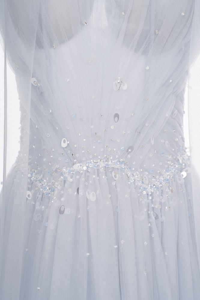 Shine with an exceptional and luxurious look with this dress, which has a charming design. This dress is expertly crafted to suit your overall look. This elegant dress is available in a light blue color, and is always a suitable choice for any occasion.