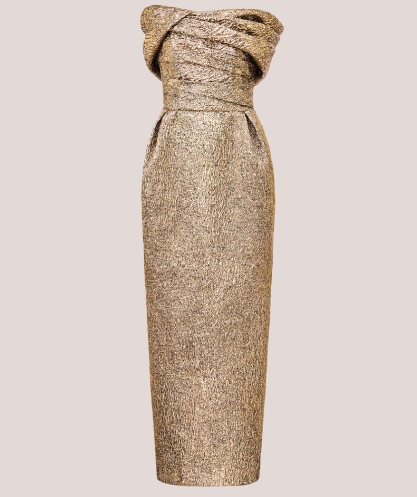 Shine with an exceptional and luxurious look with this dress, which has a charming design. This dress is expertly crafted to suit your overall look. This elegant dress is available in a dark gold color, and is always a suitable choice for any occasion.