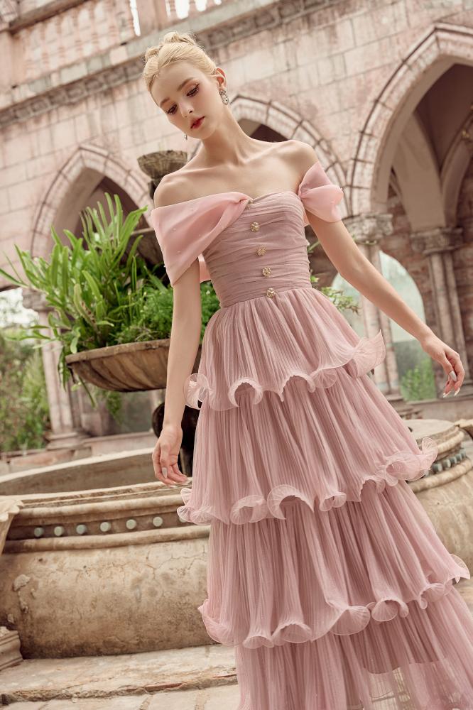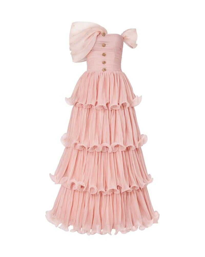 Shine with an exceptional and luxurious look with this dress, which has a charming design. This dress was made to perfection to suit your general appearance. This elegant dress is available in pink, and is always a suitable choice for any occasion.