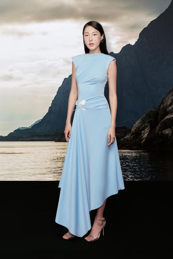 Shine with an exceptional and luxurious look with this dress, which has a charming design. This dress was made to perfection to suit your general appearance. This elegant dress is available in a light sky color and is always a suitable choice for any occasion.