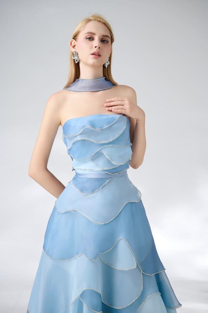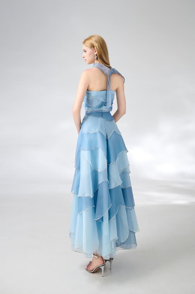 Shine with an exceptional and luxurious look with this dress, which has a charming design. This dress is expertly crafted to suit your overall look. This elegant dress is available in blue and is always a suitable choice for any occasion.