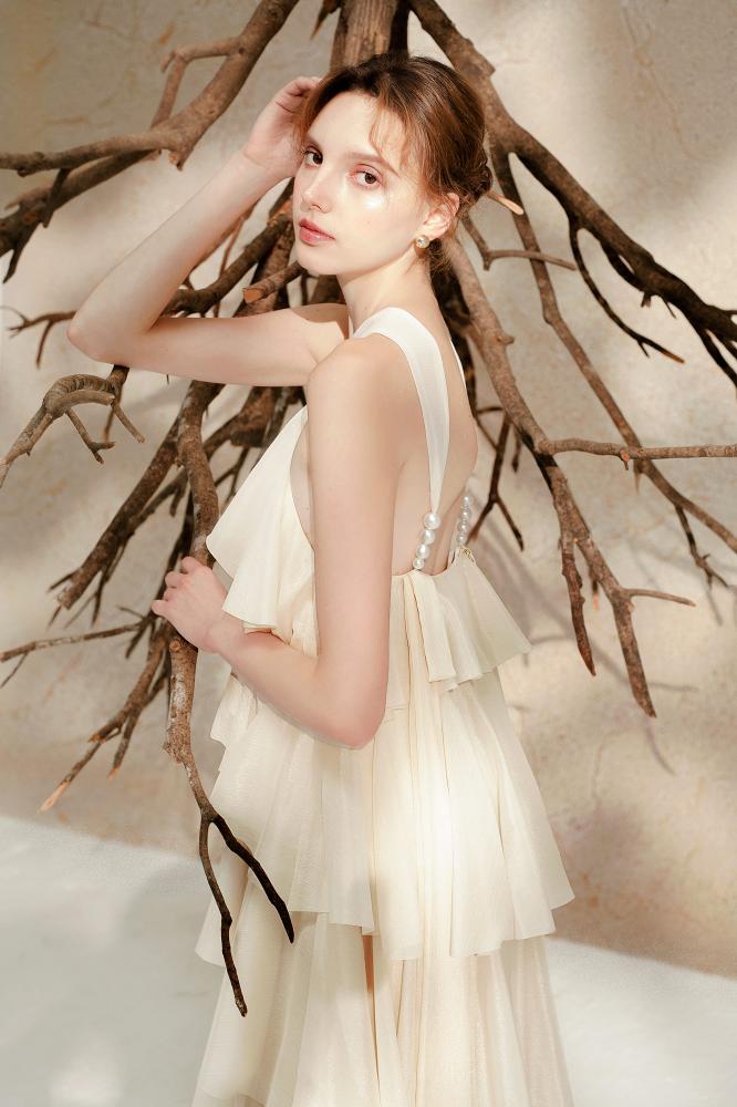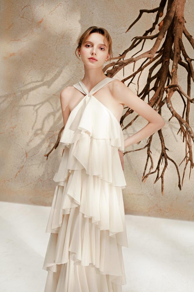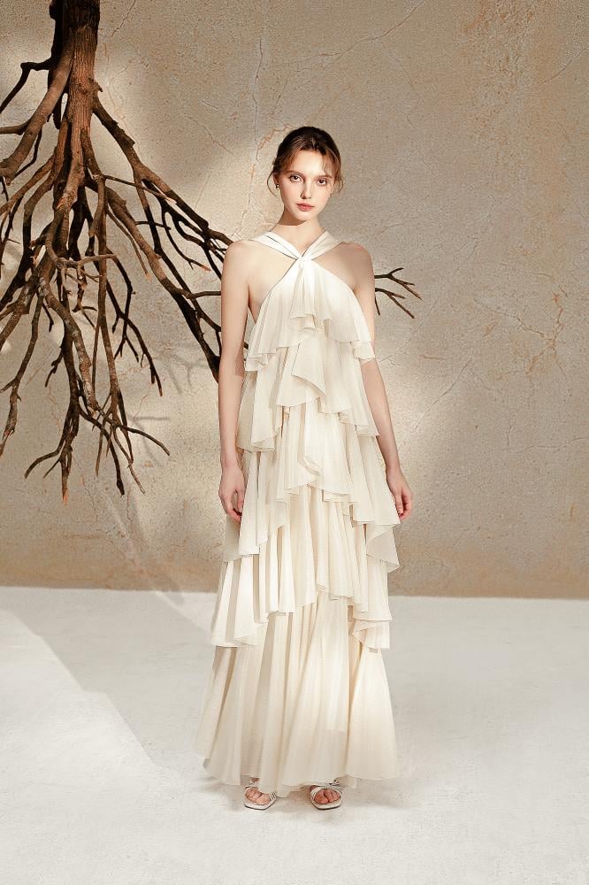Shine with an exceptional and luxurious look with this dress, which has a charming design. This dress is expertly crafted to suit your overall look. This elegant dress is available in beige, and is always a suitable choice for any occasion.