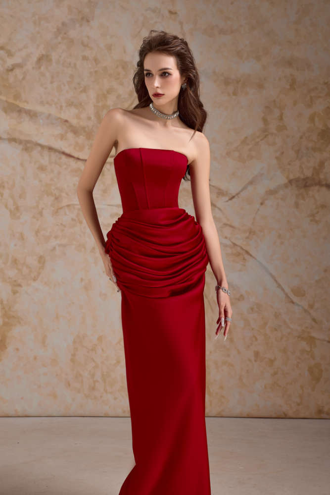 Shine with an exceptional and luxurious look with this dress, which has a charming design. This dress is expertly crafted to suit your overall look. This elegant dress is available in red, and is always a suitable choice for any occasion.