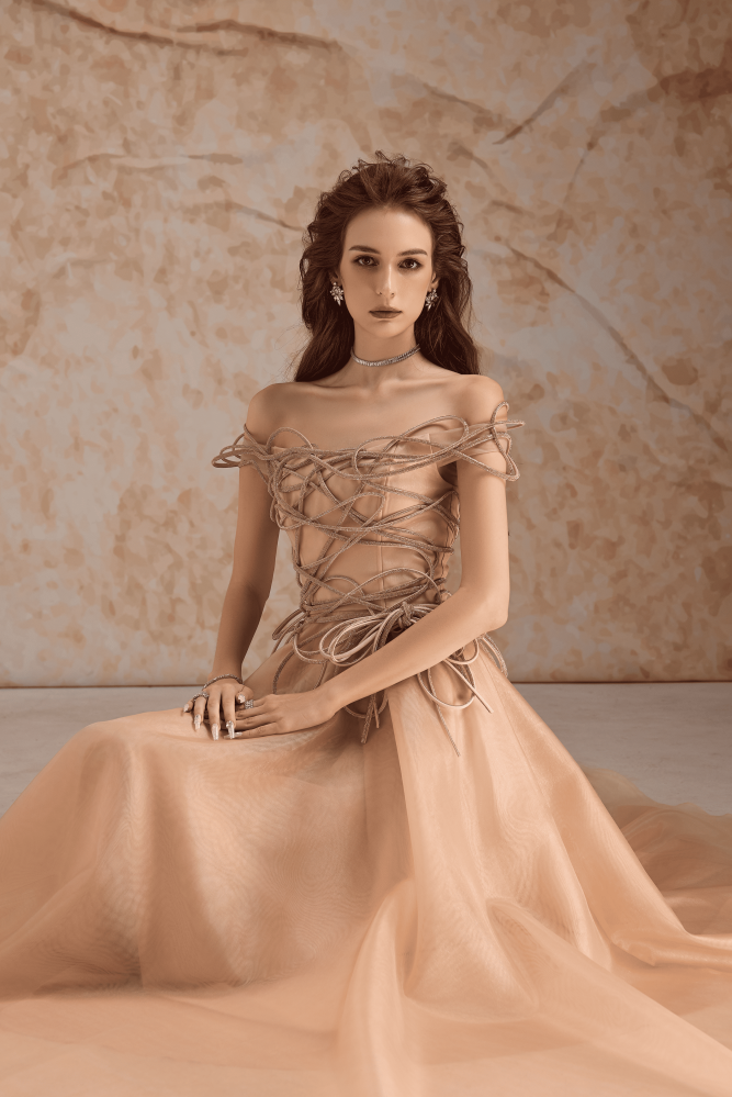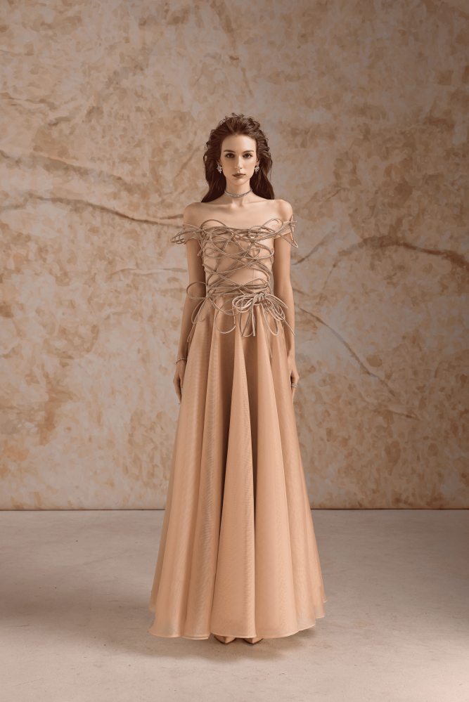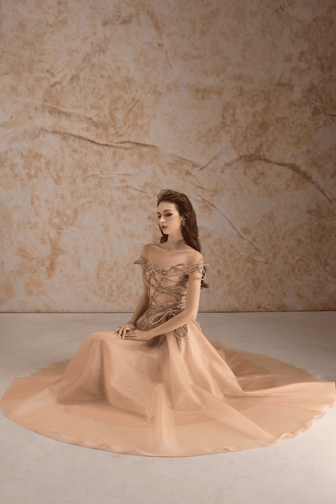 Shine with an exceptional and luxurious look with this dress, which has a charming design. This dress is expertly crafted to suit your overall look. This elegant dress is available in a nude color, and is always a suitable choice for any occasion.