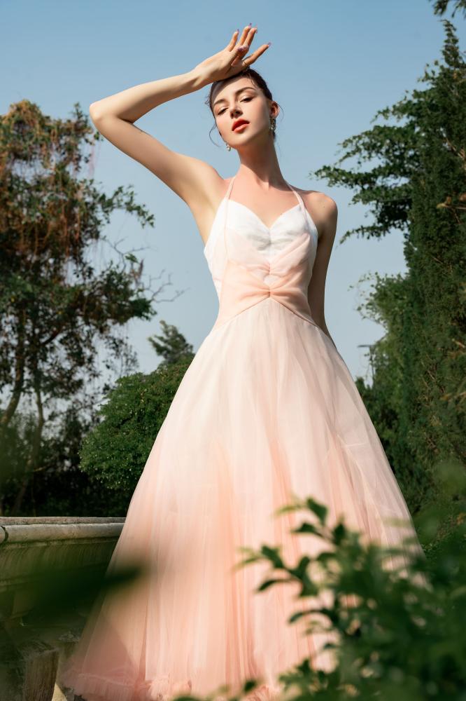 Shine with an exceptional and luxurious look with this dress, which has a charming design. This dress was made to perfection to suit your general appearance. This elegant dress is available in pink, and is always a suitable choice for any occasion.
