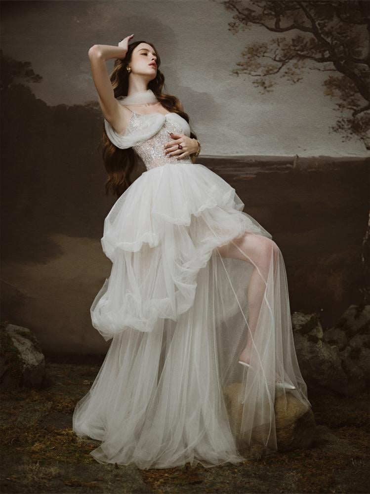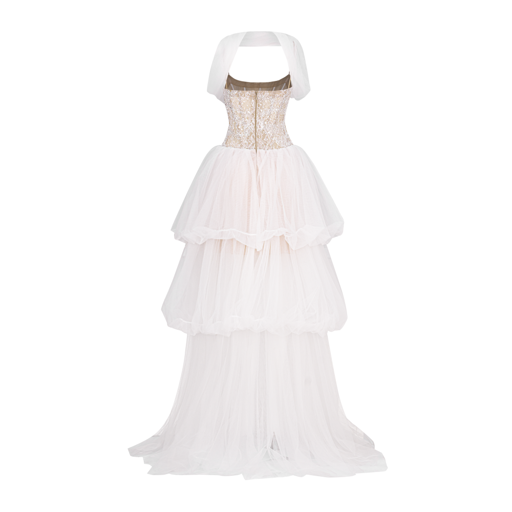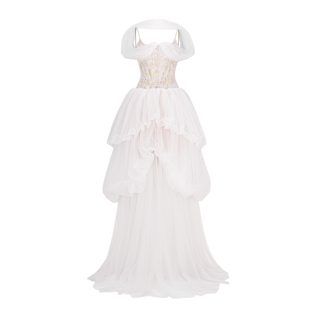 Shine with an exceptional and luxurious look with this dress, which has a charming design. This dress is expertly crafted to suit your overall look. This elegant dress is available in white and beige, and is always a suitable choice for any occasion.