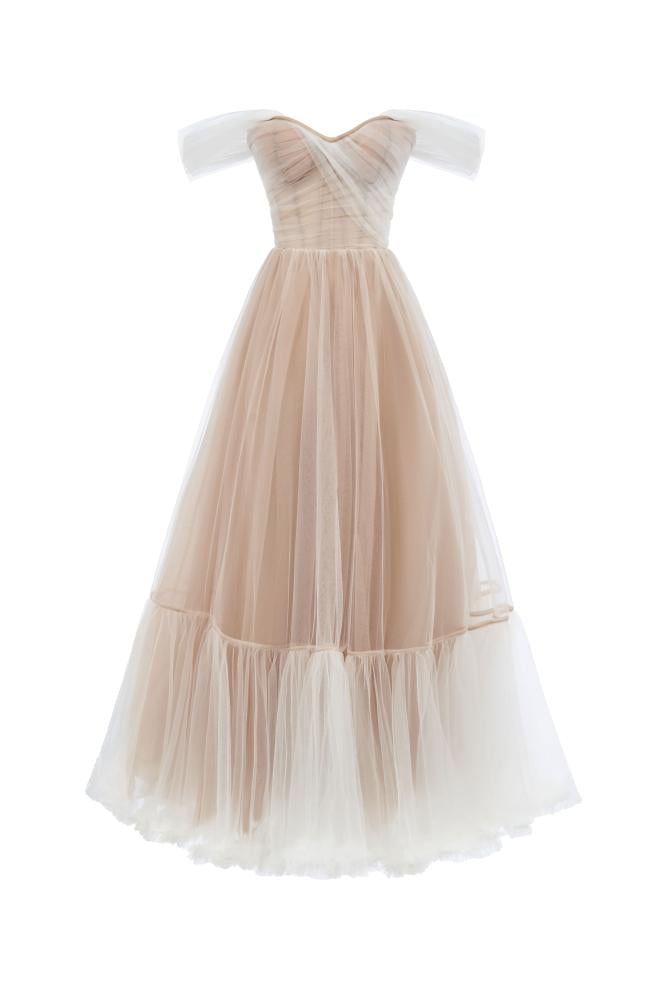 Shine with an exceptional and luxurious look with this dress, which has a charming design. This dress is expertly crafted to suit your overall look. This elegant dress is available in beige, and is always a suitable choice for any occasion.