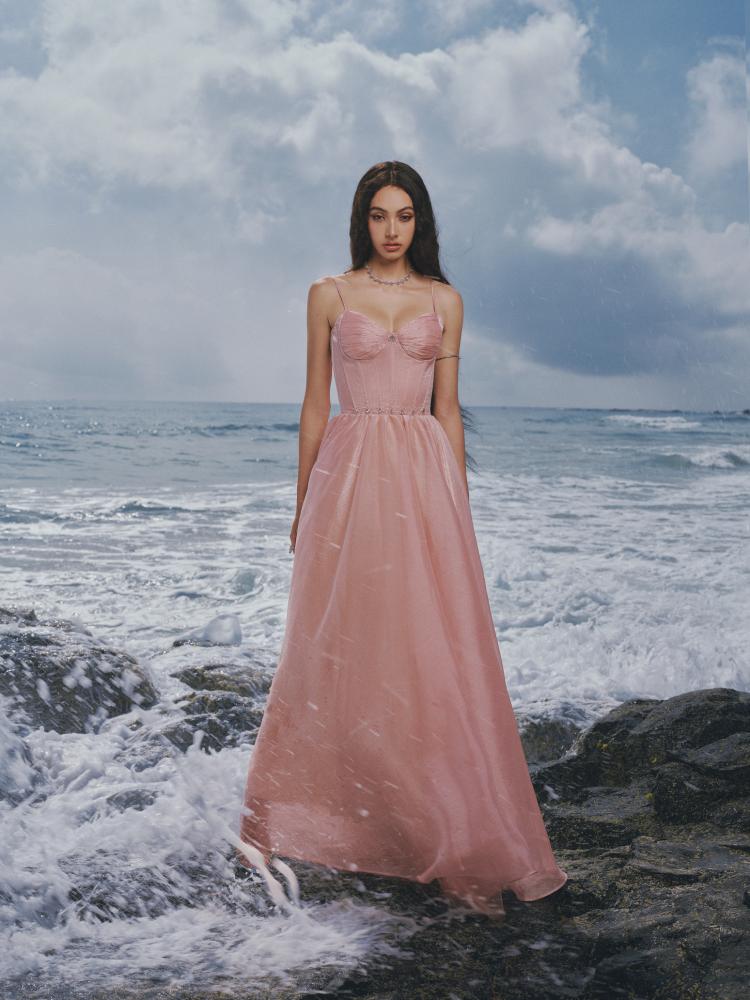 Shine with an exceptional and luxurious look with this dress, which has a charming design. This dress was made to perfection to suit your general appearance. This elegant dress is available in pink, and is always a suitable choice for any occasion.