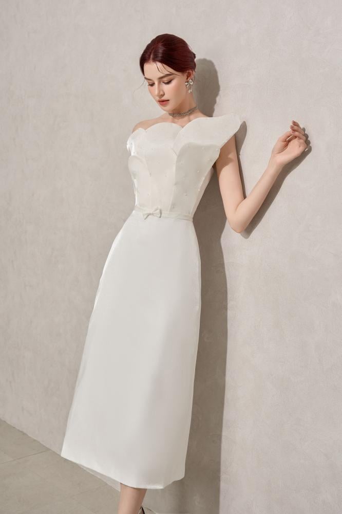 Shine with an exceptional and luxurious look with this dress, which has a charming design. This dress was made to perfection to suit your general appearance. This elegant dress is available in white, and is always a suitable choice for any occasion.
