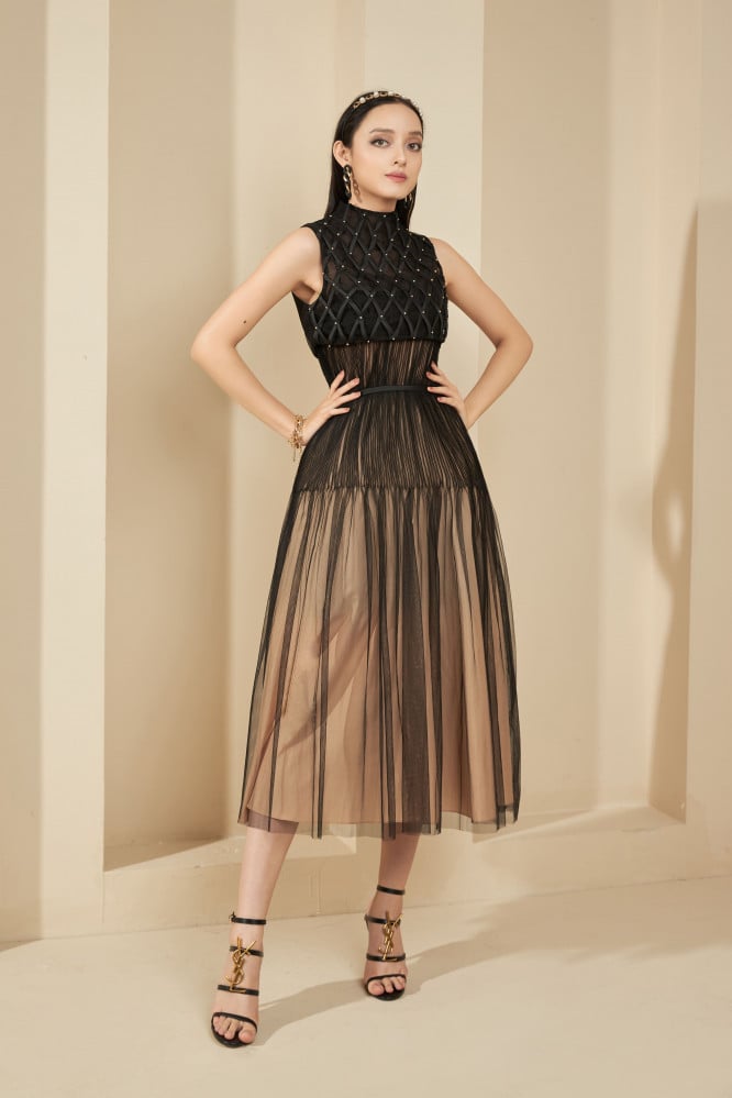 Shine with an exceptional and luxurious look with this dress, which has a charming design. This dress is expertly crafted to suit your overall look. This elegant dress is available in black and is always a suitable choice for any occasion.