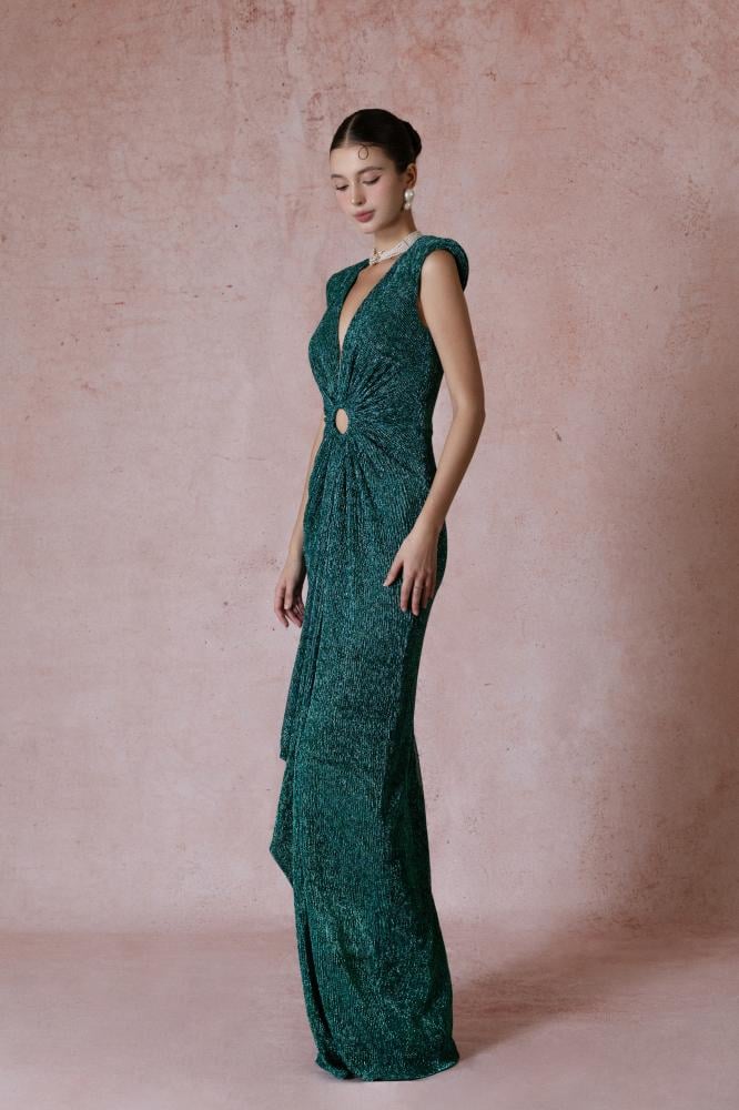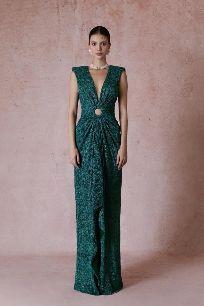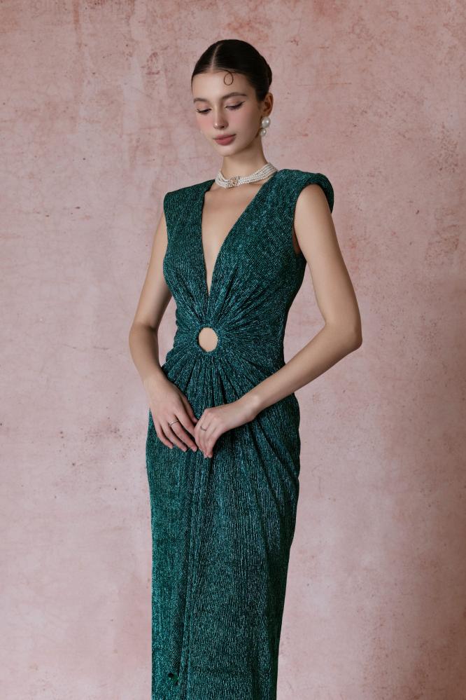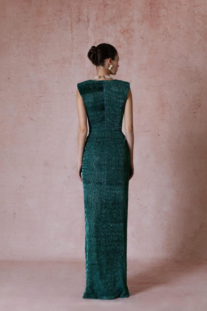 Shine with an exceptional and luxurious look with this dress, which has a charming design. This dress was made to perfection to suit your general appearance. This elegant dress is available in dark green, and is always a suitable choice for any occasion.