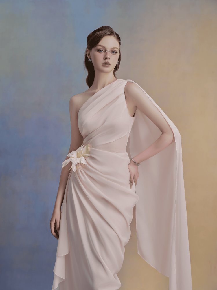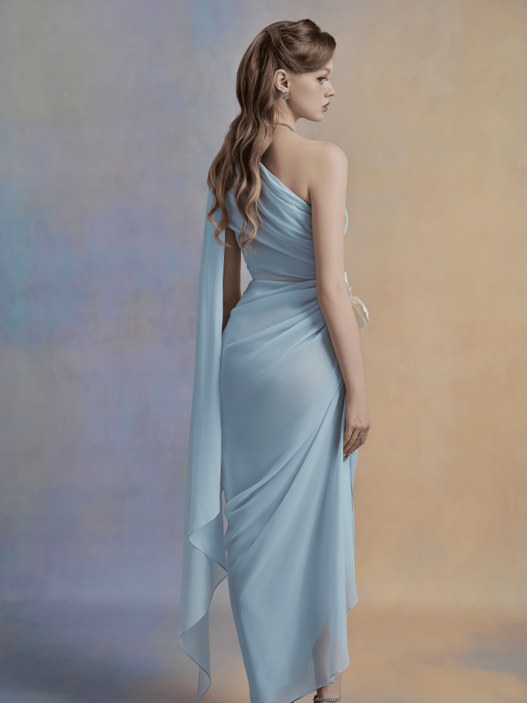 Shine with an exceptional and luxurious look with this dress, which has a charming design. This dress is expertly crafted to suit your overall look. This elegant dress is available in light blue and light pink, making it a suitable choice for any occasion.