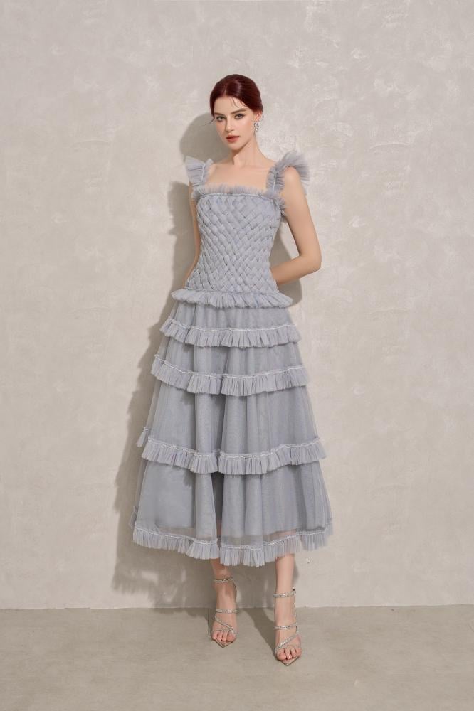 Shine with an exceptional and luxurious look with this dress, which has a charming design. This dress was made to perfection to suit your general appearance. This elegant dress is available in light blue, and is always a suitable choice for any occasion.