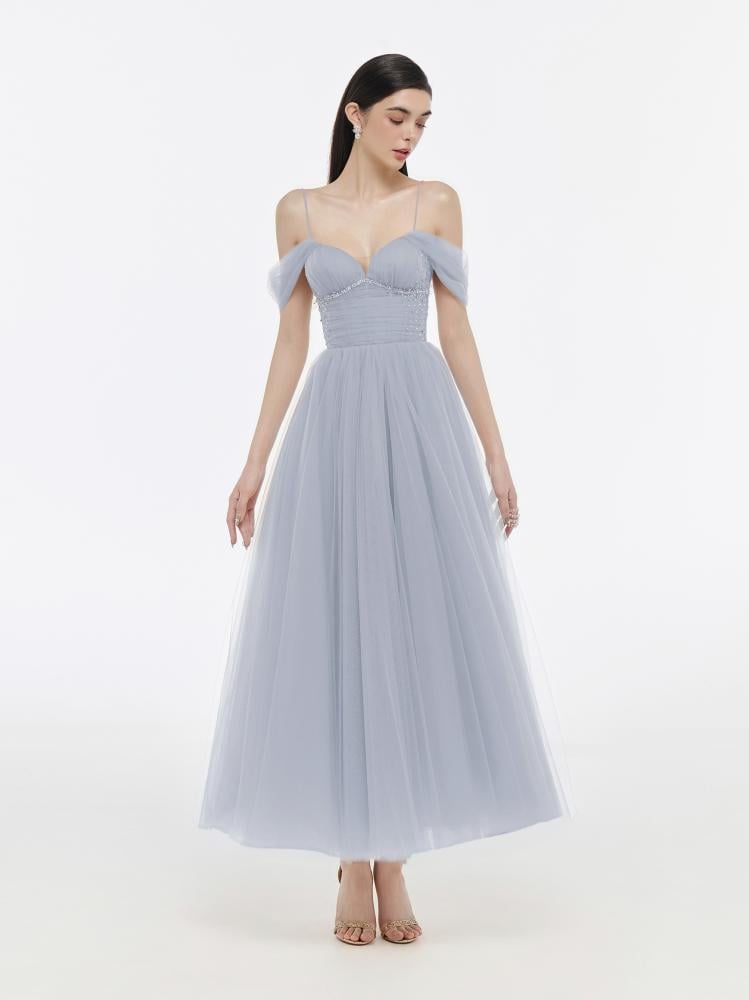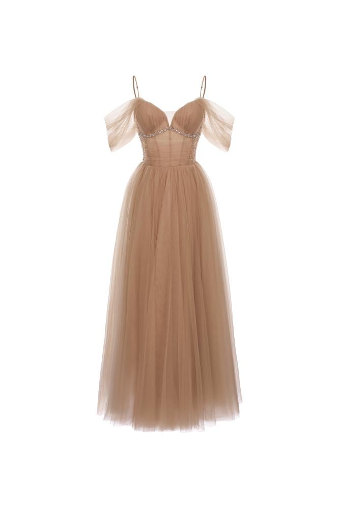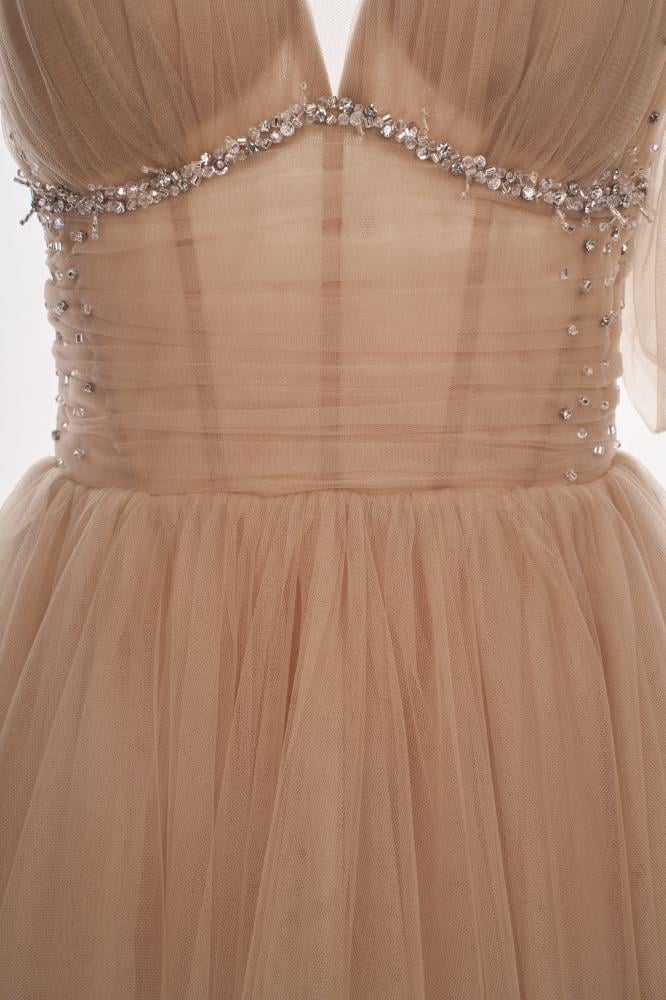 Shine with an exceptional and luxurious look with this dress, which has a charming design. This dress is expertly crafted to suit your overall look. This elegant dress is available in blue-grey and brown, and is always a suitable choice for any occasion.