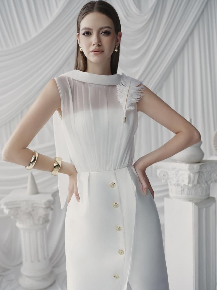 Shine with an exceptional and luxurious look with this dress, which has a charming design. This dress is expertly crafted to suit your overall look. This elegant dress is available in white and is always a suitable choice for any occasion.