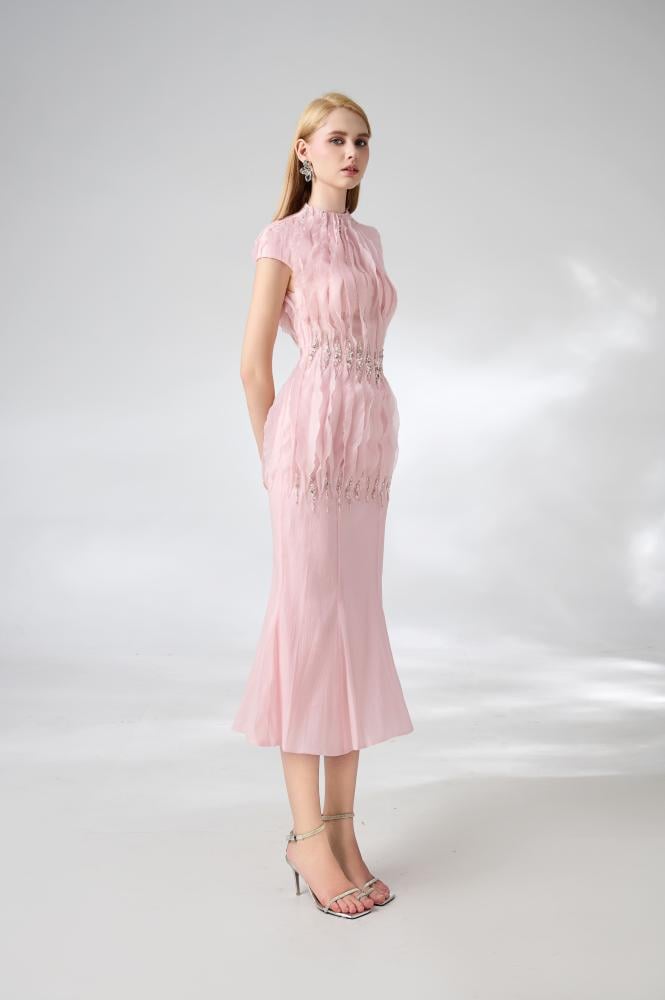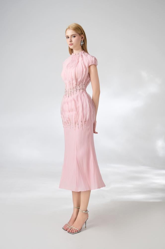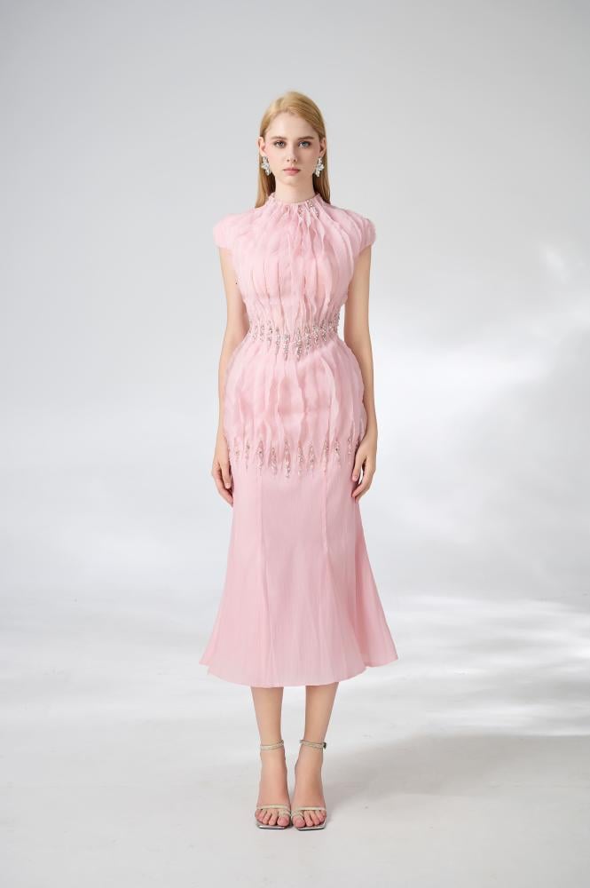 Shine with an exceptional and luxurious look with this dress, which has a charming design. This dress is expertly crafted to suit your overall look. This elegant dress is available in pink, and is always a suitable choice for any occasion.