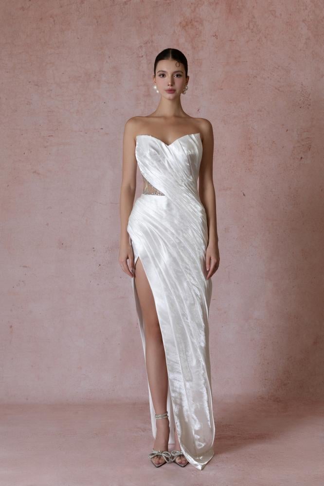 Shine with an exceptional and luxurious look with this dress, which has a charming design. This dress was made to perfection to suit your general appearance. This elegant dress is available in white, and is always a suitable choice for any occasion.