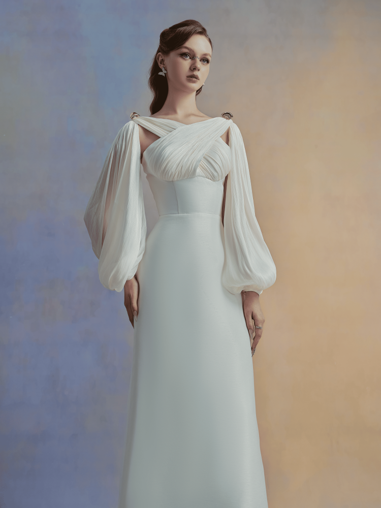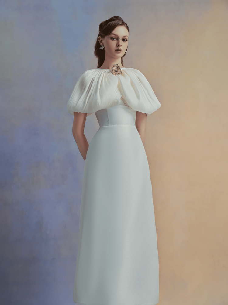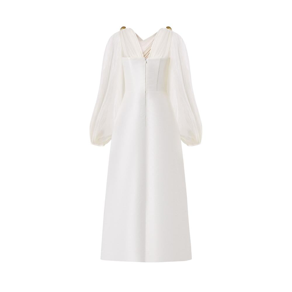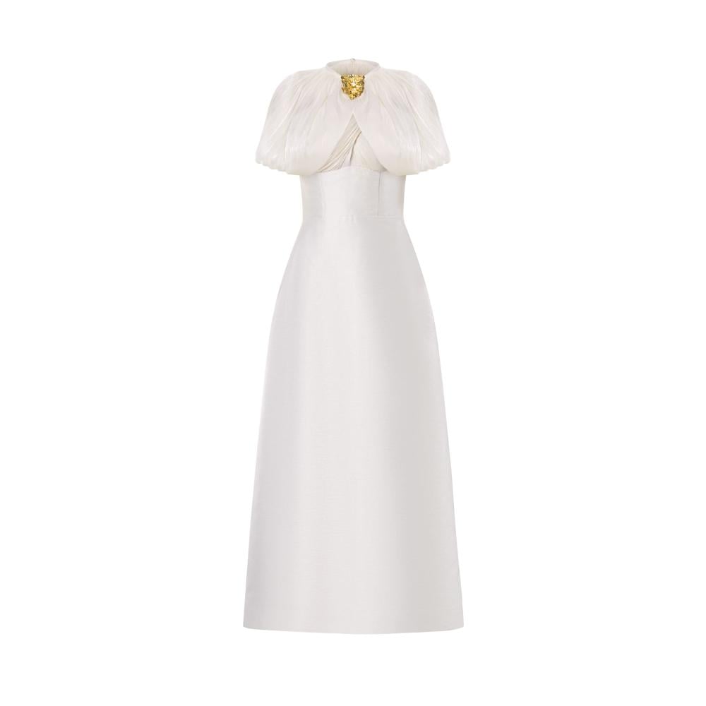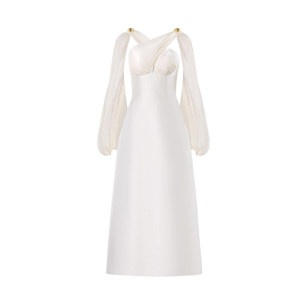Shine with an exceptional and luxurious look with this dress, which has a charming design. This dress is expertly crafted to suit your overall look. This elegant dress is available in a cream color, and is always a suitable choice for any occasion.